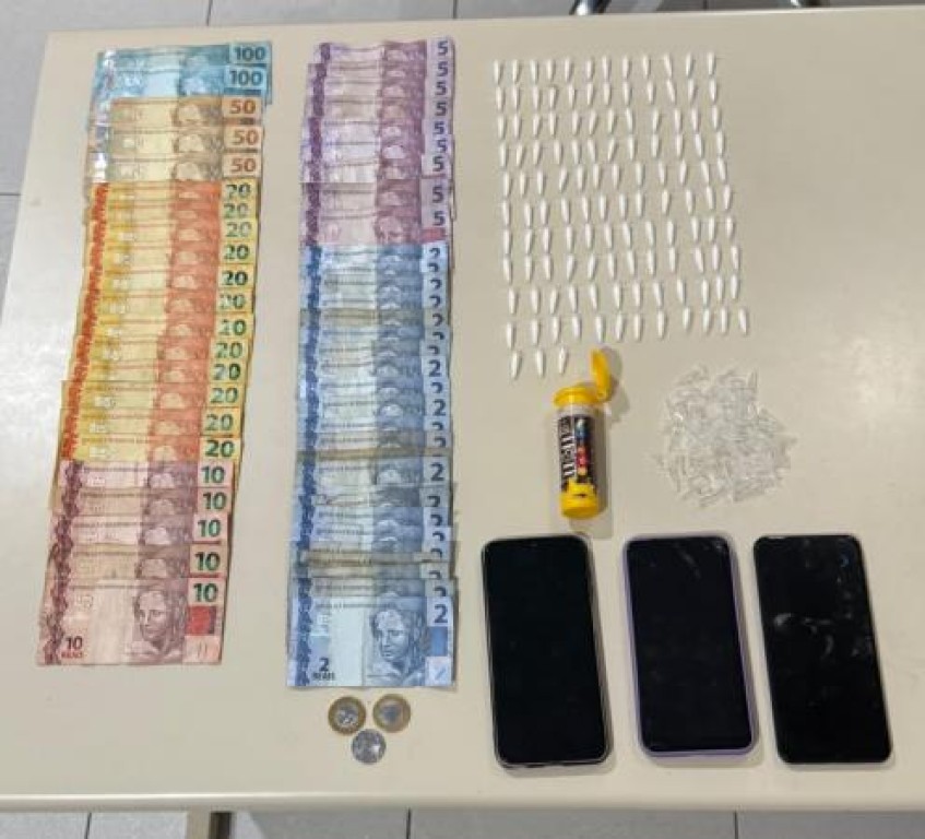Diante da suspeita, as equipes realizaram a abordagem. No interior das casas, foram localizadas 123 porções de cocaína acondicionadas em eppendorfs, além de R$ 737,25 em espécie e três aparelhos celulares. Todo o material foi apreendido, e os três suspeitos foram presos em flagrante.