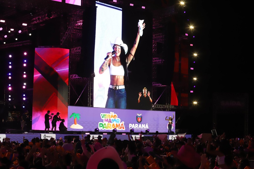 RECORDES – Com o público de 228 mil pessoas, Ana Castela entra para o seleto grupo de recordistas do Verão Maior Paraná. Na edição de 2026, ela fica atrás apenas de Alok, com 338 mil pessoas, e Gusttavo Lima, com 265 mil. Entre as mulheres, assume o topo: até então, o maior público feminino do festival havia sido de Simone Mendes, que cantou para 152 mil pessoas em 2024. Um feito que reforça não só o tamanho da artista, mas também a força do festival no Litoral do Paraná.