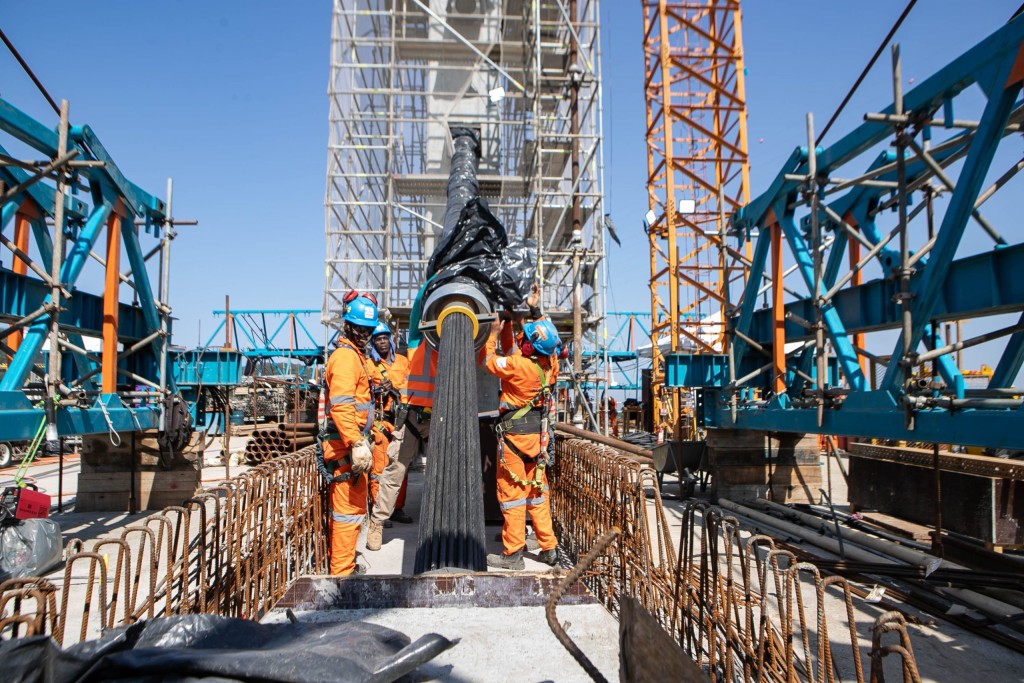 Segundo Marques, essa é uma das etapas mais complexas da construção da ponte. “O maior desafio é a precisão da montagem. Tanto no mastro quanto no tabuleiro, os estais são fixados em ancoragens metálicas. Essas ancoragens precisam ser instaladas com precisão milimétrica. Se houver desalinhamento, isso gera esforços não previstos no projeto, que podem levar à necessidade de reforço da estrutura ou, em casos extremos, até à demolição e reinstalação. Por isso, a precisão é fundamental”, disse.