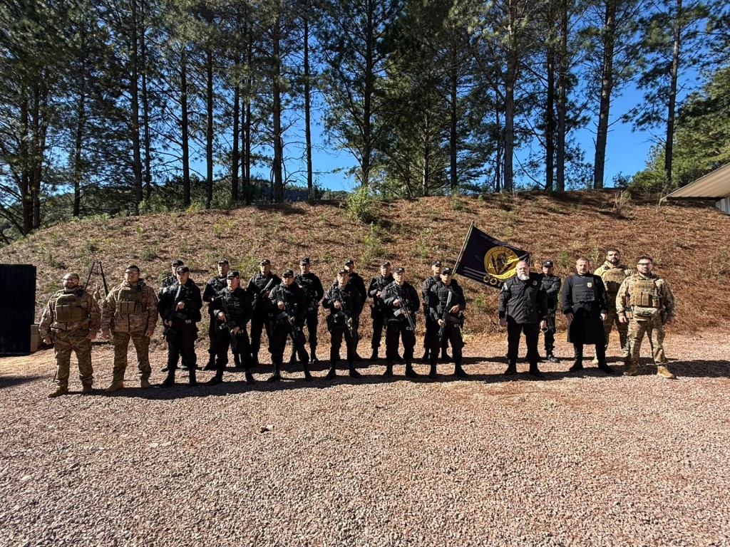 O Delegado-Geral da Polícia Civil do Paraná (PCPR), Silvio Jacob Rockembach, e o Delegado-Geral Adjunto, Riad Braga Farhat, estiveram presentes, nesta semana, nas instruções técnicas de Combate Aproximado em Edificações, realizadas no âmbito da IX edição do Curso de Operações Táticas Especiais (Cote), promovido pelo Grupo Tigre, unidade de elite da PCPR.