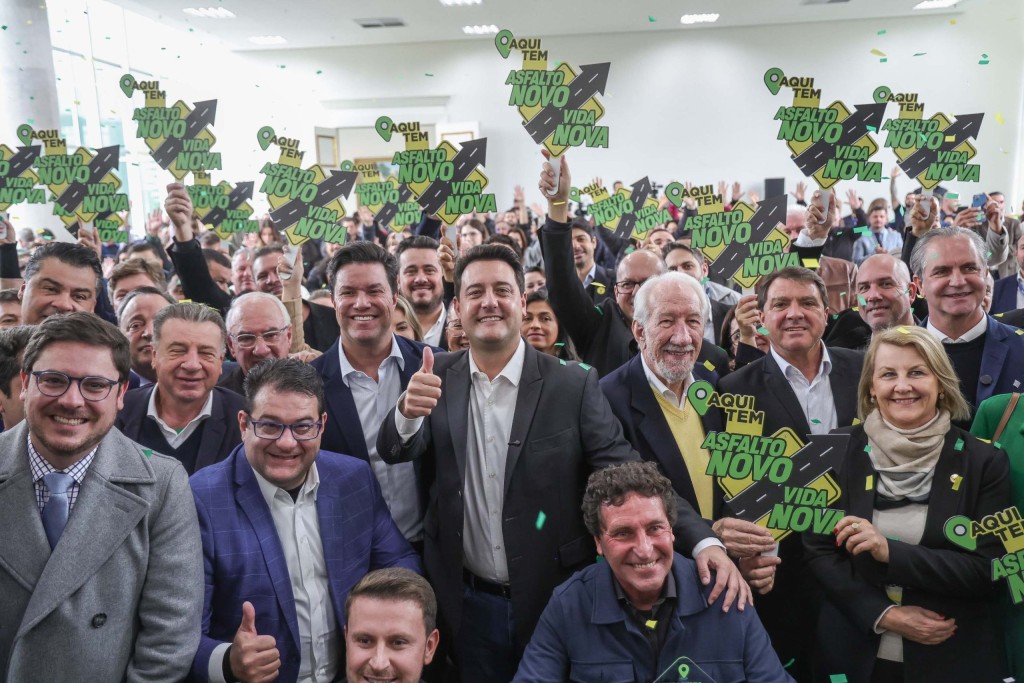 PRESENÇAS – Também participaram do evento o vice-governador Darci Piana; o chefe da Casa Civil, João Carlos Ortega; o chefe da Casa Militar, Marcos Tordoro; os secretários estaduais da Saúde, Beto Preto; Inovação e Inteligência Artificial, Alex Canziani; Turismo, Leonaldo Paranhos; Agricultura e Abastecimento, Marcio Nunes; Mulher, Igualdade Racial e Pessoa Idosa, Leandre Dal Ponte; Infraestrutura e Logítica, Sandro Alex; o presidente do DER/PR, Fernando Furiatti; o presidente do Ipardes, Jorge Callado; o presidente da Assembleia Legislativa do Paraná (Alep), Alexandre Curi; a deputada federal Luísa Canziani; o líder do Governo na Alep, deputado estadual Hussein Bakri; os deputados estaduais Gugu Bueno, Marcelo Rangel, Luiz Claudio Romanelli, Luis Corti, Marcia Huçulak, Alisson Wandscheer, Alexandre Amaro, Evandro Araújo, Anibelli Neto, Delegado Jacovós, Pedro Paulo Bazana, Flávia Francischini, Matheus Vermelho e Doutor Leônidas; o chefe da representação do Paraná em Brasília, Rubens Bueno II; prefeitos, vice-prefeitos e vereadores de municípios contemplados pelo programa.