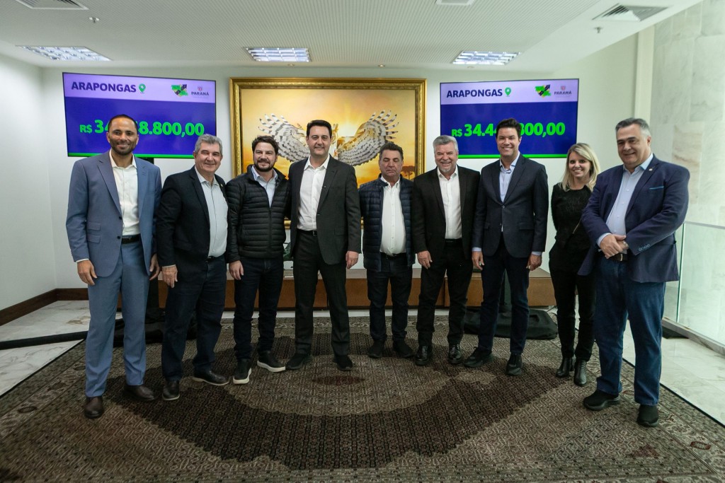 PRESENÇAS – Também participaram das assinaturas os secretários estaduais da Saúde, Beto Preto; Trabalho, Qualificação e Renda, Do Carmo; a superintendente do Paranacidade, Camila Scucato; o superintendente Geral de Apoio aos Municípios da Casa Civil, Sérgio Onofre; o presidente da Assembleia Legislativa, Alexandre Curi; o líder do governo da Assembleia Legislativa, deputado estadual Hussein Bakri; os deputados estaduais Alisson Wandscheer, Maria Victoria, Batatinha, Soldado Adriano José, Flávia Francischini, Delegado Jacovós, Gugu Bueno e Pedro Paulo Bazana.
