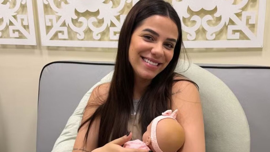 A ex-BBB revelou que as estrias surgiram principalmente de um lado: “Tá parecendo roxo, estria… Só desse lado, porque o outro não tem nada”, disse Key, destacando que a barriga continua sem marcas e que a linha típica da gestação começa a aparecer de forma sutil.