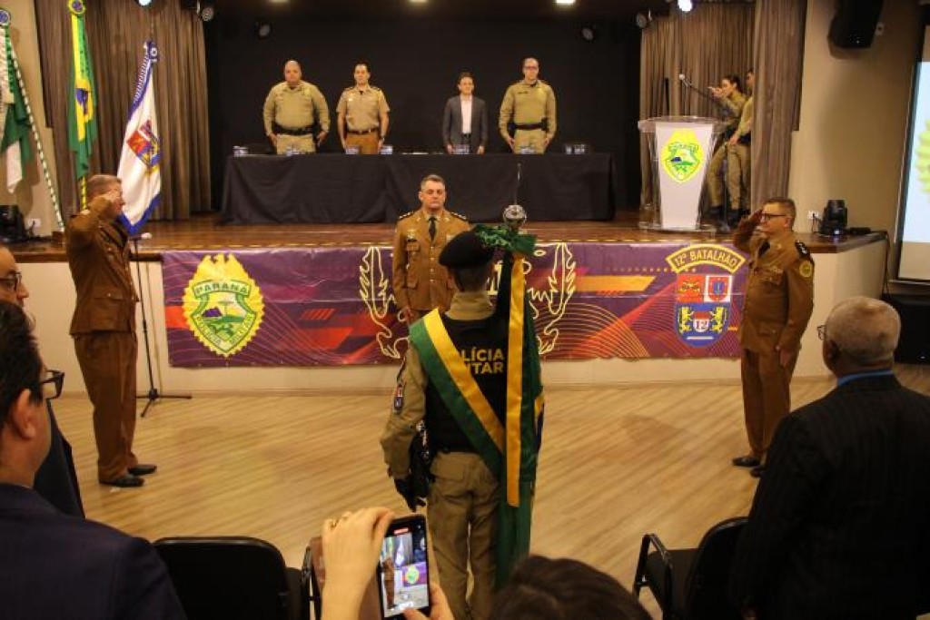 Na manhã desta quarta-feira (17), a Polícia Militar do Paraná realizou a solenidade de passagem de comando do 12º Batalhão de Polícia Militar (BPM), em evento realizado no Shopping Crystal, em Curitiba. O tenente-coronel Carlos Agenor Bueno da Silva transmitiu o comando da unidade ao major Estevão Holler Junior. A cerimônia teve início com o reconhecimento ao trabalho desempenhado pelo tenente-coronel Carlos à frente do 12º BPM.