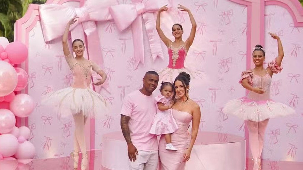 Nathalia Félix e Douglas Costa celebraram o primeiro aniversário da filha, Gabriella, com um festão neste final de semana.