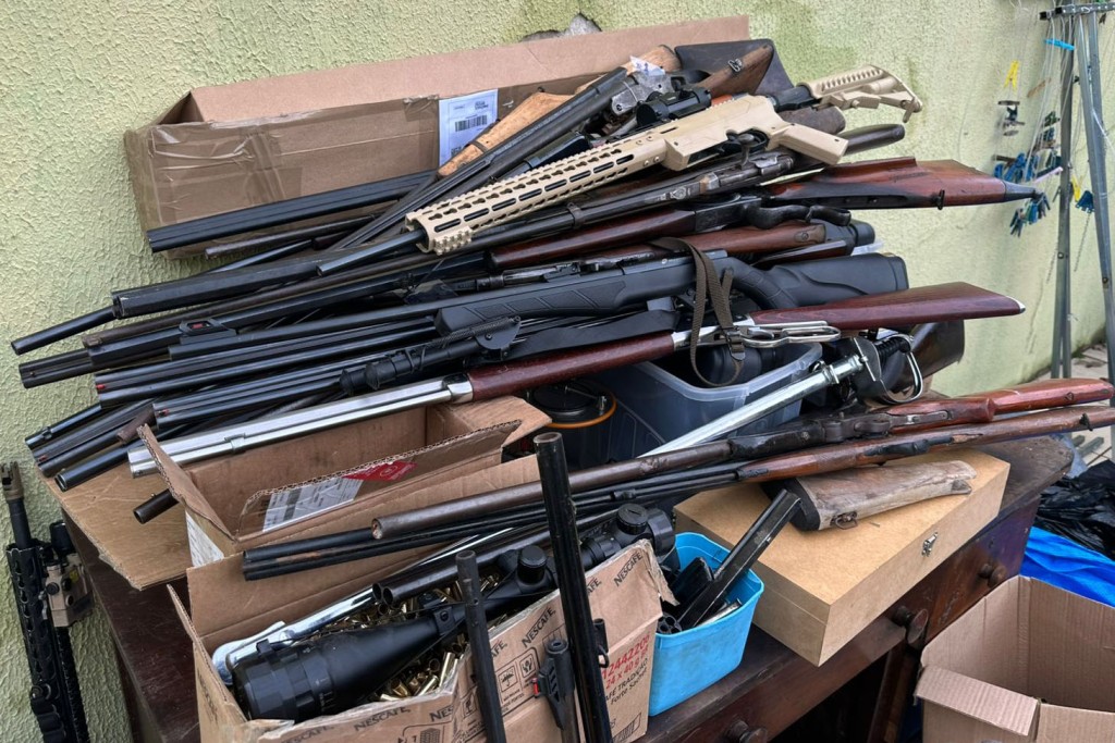 “Durante o cumprimento das ordens judiciais, os policiais civis localizaram aproximadamente 80 armas de fogo, além de grande quantidade de munições, estojos, pólvora, pontas e máquinas utilizadas para recarga. A suspeita é que ele produzisse munições. O material apreendido passará por contagem e perícia”, explica o delegado Rodrigo Brown.