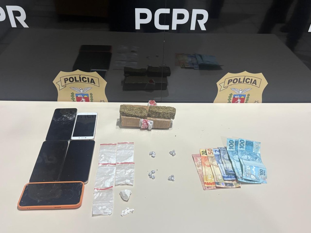 Conforme o delegado da PCPR John Élber dos Santos, durante o cumprimento de um dos mandados, foram apreendidas porções de crack, maconha e cocaína, além de aparelhos celulares e valores em espécie.