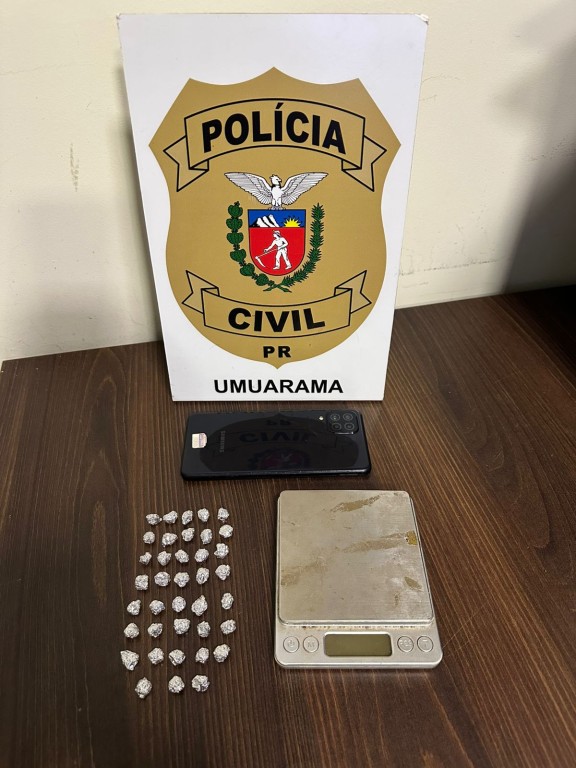 “No endereço, localizado no bairro Centro, em Maria Helena, os policiais encontraram 38 pedras de crack já embaladas para a comercialização, uma balança de precisão e um telefone celular”, explica o delegado da PCPR Leonardo Rodrigues.