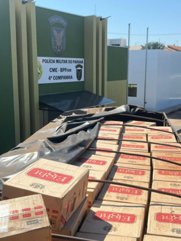 No último sábado (16), a Polícia Militar do Paraná (PMPR), por meio do Batalhão de Polícia de Fronteira (BPFRON), apreendeu um caminhão carregado de cigarros contrabandeados do Paraguai na região oeste do estado.