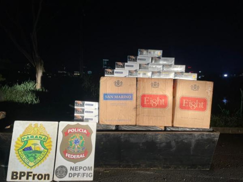 Na terça-feira (13), a Polícia Militar do Paraná, por meio do Batalhão de Polícia de Fronteira (BPFRON), realizou a apreensão de cigarros contrabandeados do Paraguai durante ação integrada com a Polícia Federal, no âmbito da Operação Protetor de Divisas e Fronteiras, no município de Foz do Iguaçu.