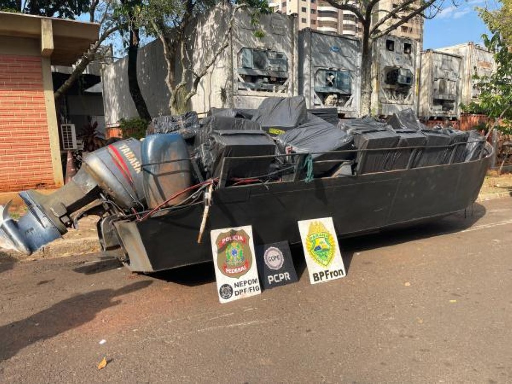 Neste sábado (13), uma ação integrada entre a Polícia Militar do Paraná, por meio do Batalhão de Polícia de Fronteira (BPFRON), a Polícia Federal e a Polícia Civil – COPE, resultou na apreensão de uma embarcação carregada com aproximadamente 7.500 pacotes de cigarros contrabandeados em Itaipulândia, na região Oeste do Estado.