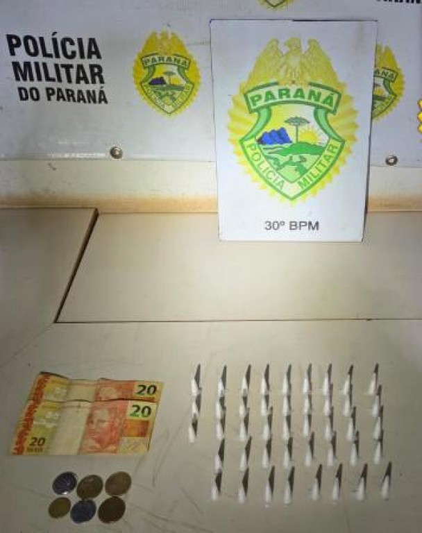 Na busca pelo local, os policiais encontraram 43 pinos de cocaína, totalizando cerca de 28 gramas, além de R$ 41,60 em dinheiro. O homem recebeu voz de prisão e foi encaminhado à Delegacia de Polícia Civil, junto com os objetos apreendidos, para os procedimentos legais cabíveis.