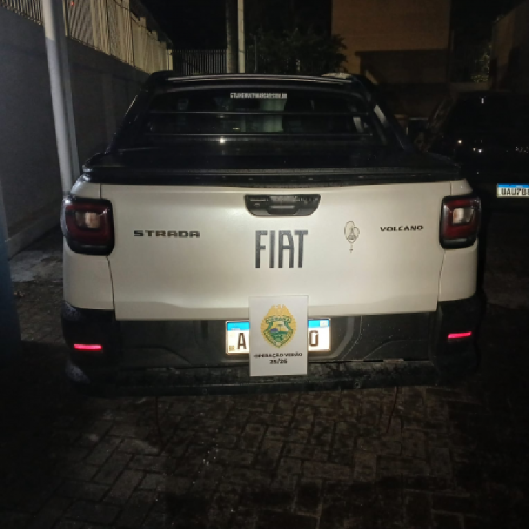 A ocorrência foi registrada por volta das 20h, na Rua dos Lírios, região central da cidade. Após informações que indicavam a possível localização de um veículo Fiat Strada, com alerta de furto registrado no dia 1º de janeiro de 2026, a equipe policial realizou diligências na região indicada.