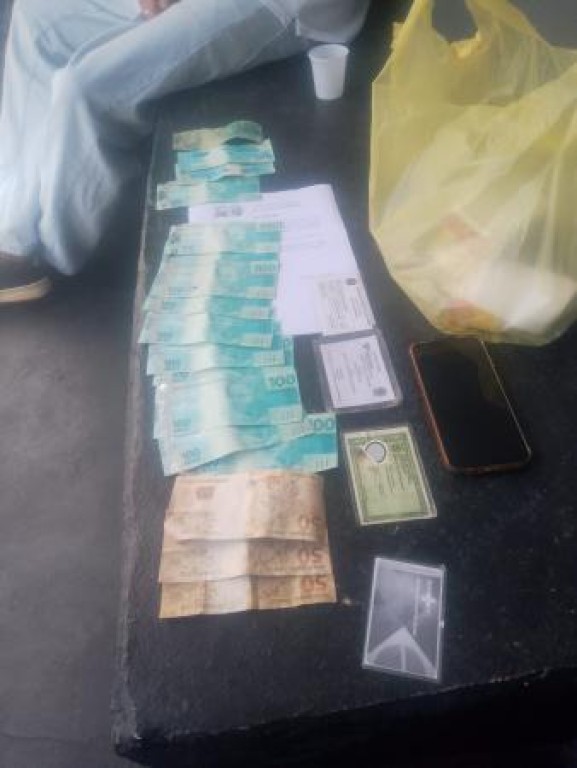 Em conversa com a equipe, o indivíduo mencionou que possuía mais cédulas falsificadas em sua residência. Com sua autorização, os policiais realizaram buscas no imóvel e encontraram mais notas falsas, totalizando R$1550,00 em cédulas falsas.