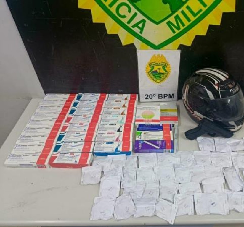 A Polícia Militar do Paraná, por meio do 20º Batalhão da Polícia Militar, prendeu suspeitos de envolvimento em uma série de roubos a farmácias na região sob atuação da unidade. Após levantamentos realizados pela agência local de inteligência, as equipes policiais intensificaram o policiamento ostensivo e conseguiram abordar os indivíduos no momento em que deixavam uma residência com produtos roubados.