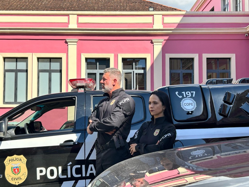 Durante a operação, equipes táticas e de investigação realizaram uma ação de saturação no bairro, na qual três pessoas foram localizadas e encaminhadas à unidade policial. Conforme o delegado da PCPR Osmar Feijó, uma delas foi presa em flagrante por porte ilegal de arma de fogo de uso restrito, com numeração suprimida.