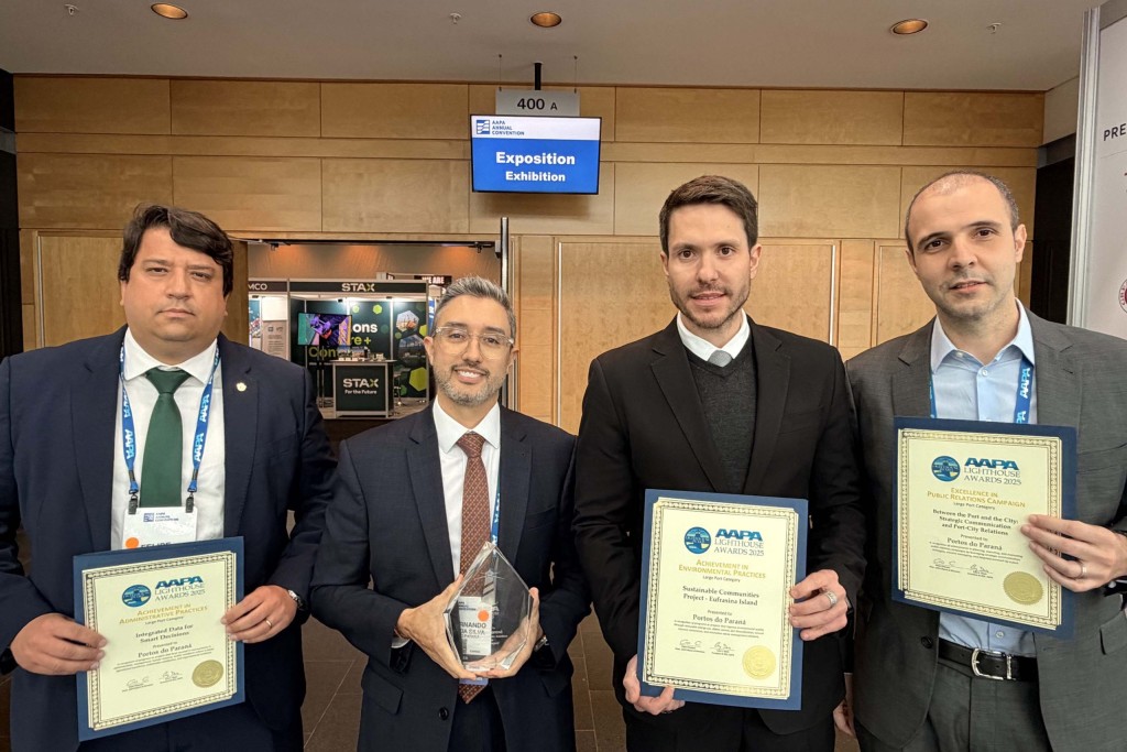 A Portos do Paraná conquistou três prêmios no AAPA Lighthouse Awards, evento da Associação Americana de Autoridades Portuárias (AAPA), que reuniu portos das Américas e aconteceu em Quebec, no Canadá. A empresa pública que administra os portos de Paranaguá e Antonina foi reconhecida com o primeiro lugar na categoria Excelência em Comunicação e Relações Públicas, pelas campanhas de comunicação das ações porto-cidade realizadas em 2024 e 2025. A empresa também recebeu os segundos lugares em Excelência em Práticas Administrativas e Excelência em Práticas Ambiental. O anúncio dos vencedores foi nesta terça-feira (7).