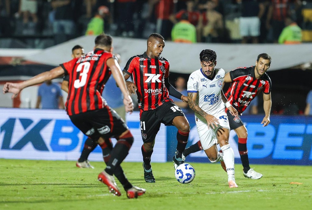 O Bahia, porém, não se deixou abalar. Continuou pressionando e, aos 41 minutos, Tiago Souza aproveitou uma bola que sobrou após um deslize de Nicolás Acevedo na área e empatou para o Esquadrão, levando o jogo para o intervalo com o placar de 1 a 1.